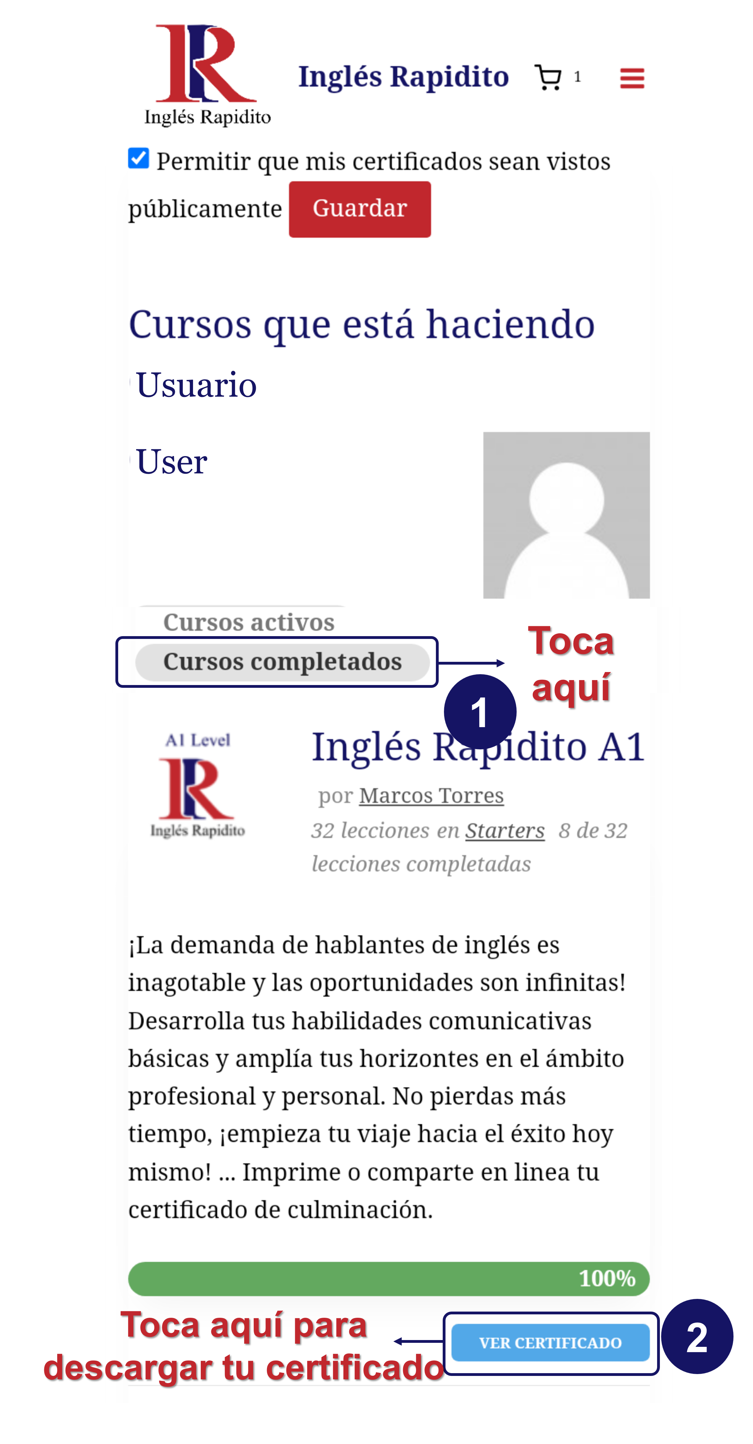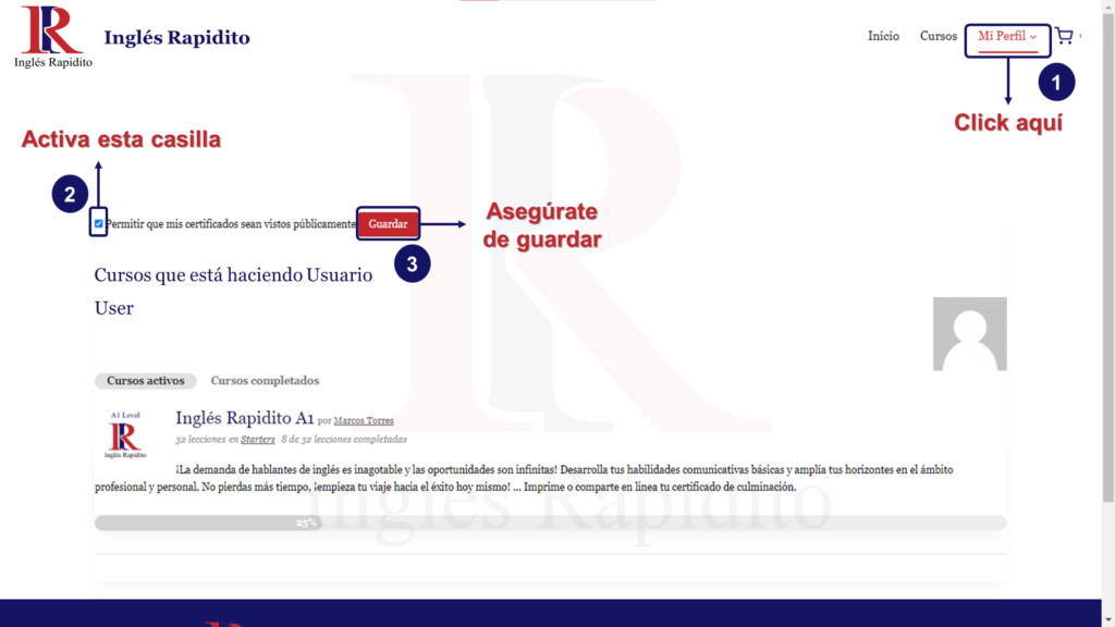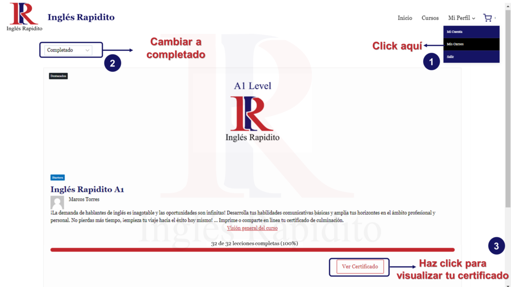 •Luego ve a la sección ‘cursos completados’ en Mi Perfil.