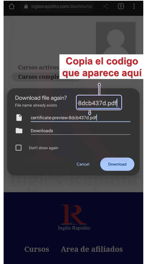 certificado. En el titulo de la descarga te aparecerá